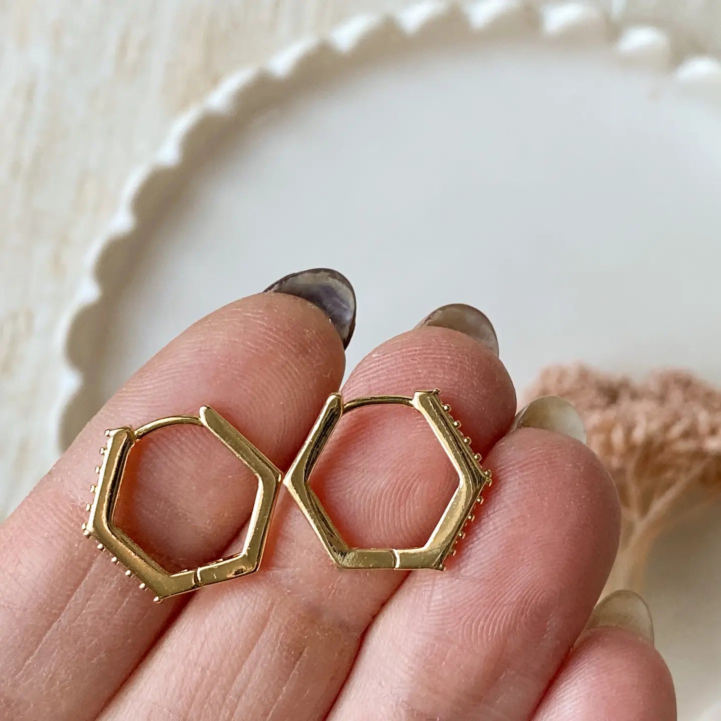 These Hexi Huggies are nickel free, tarnish resistant, and as sparkly as ever with their cubic zirconia stones.