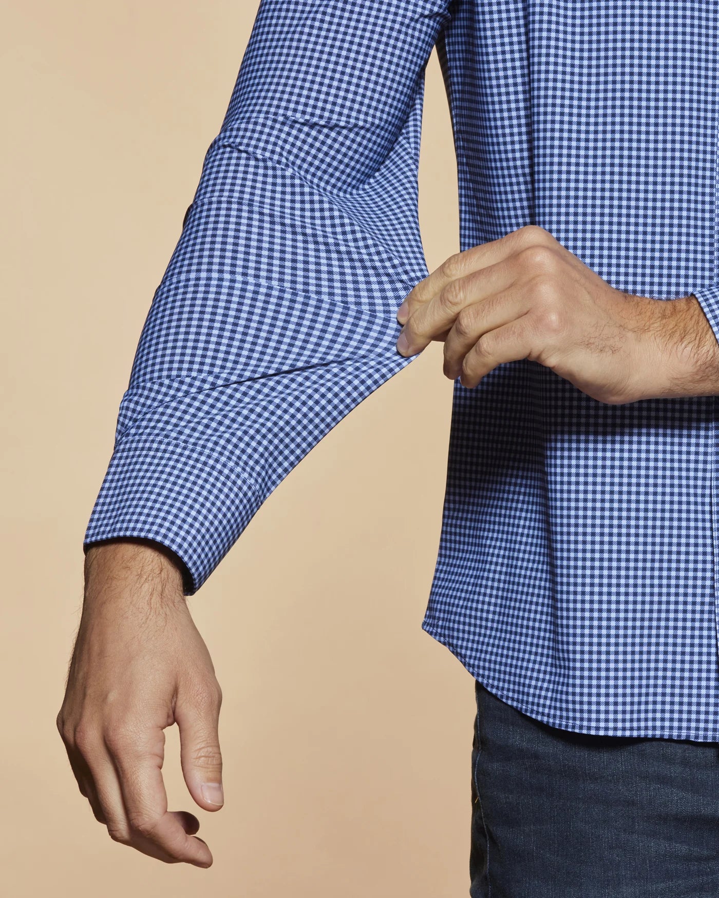 The Jax Gingham Shirt is your new go-to for looking sharp without the fuss. This lightweight button-down features a tailored athletic fit that moves with you, while breathable, sweat-wicking fabric keeps you cool and dry all day long. The wrinkle-free design means less time ironing and more time living your best life. Whether you're heading to the office or out for weekend adventures, this gingham classic delivers effortless style and all-day comfort.