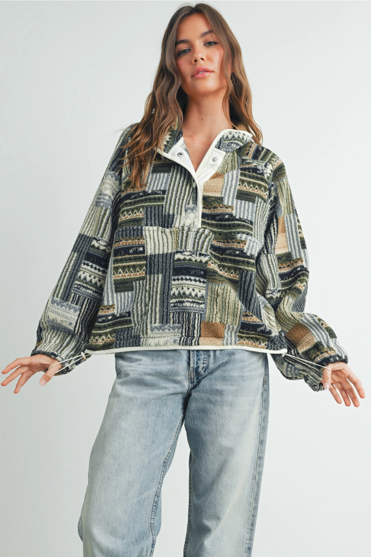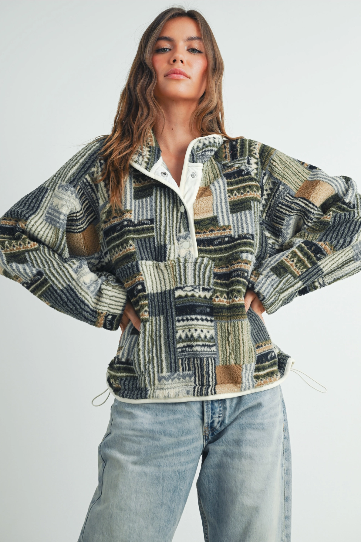 Throw on the Lennon Patchwork Sweatshirt and let your vibe do the talking. This cozy layer features a bold patchwork print bursting with multicolor, vibrant hues that'll brighten any day. Crafted from soft, breathable fabric, it wraps you in comfort and warmth without the bulk. The relaxed fit means you can move freely, lounge guilt-free, or style it however feels right. Perfect for those moments when you want to feel good and look even better.