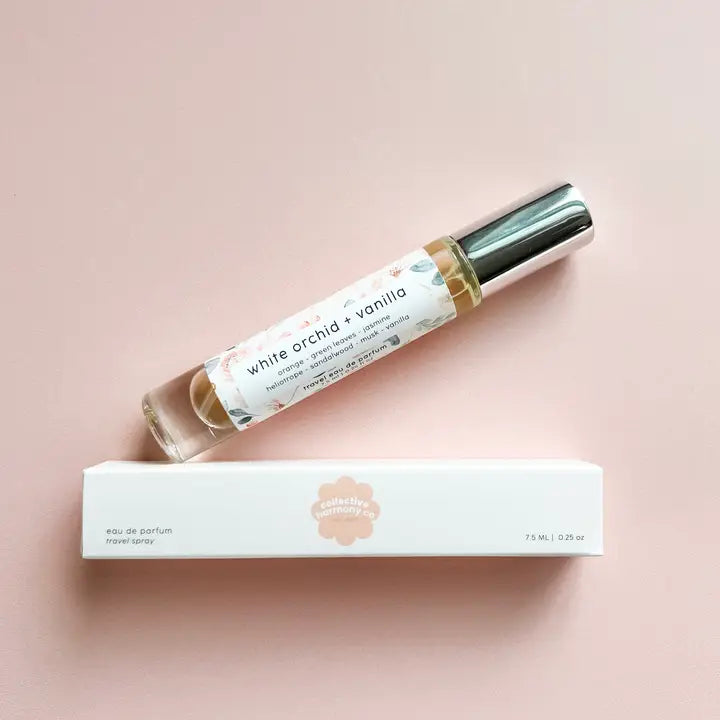 Not your average vanilla scent! White orchid + vanilla is a complex and invigorating fragrance that envelops you in a captivating embrace of sweetness and earthiness, This unique blend is luxurious, comforting + a little nostalgic.